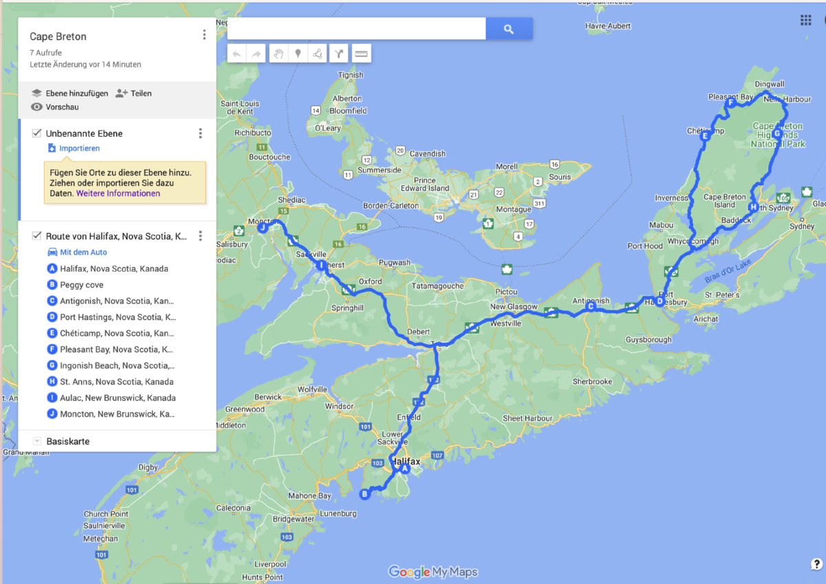 Zuerst möchten wir das Cape Breton umrunden: Start ca 30.3.23 In Moncton ca 8.4. Dauer: ca 9 Tage