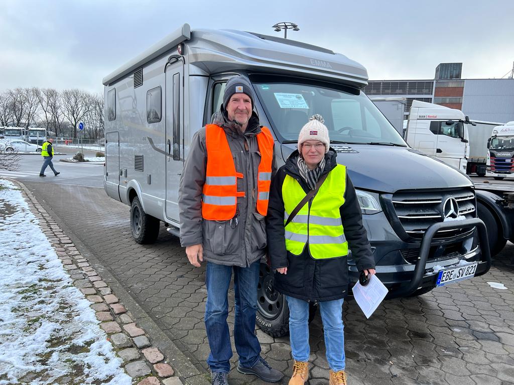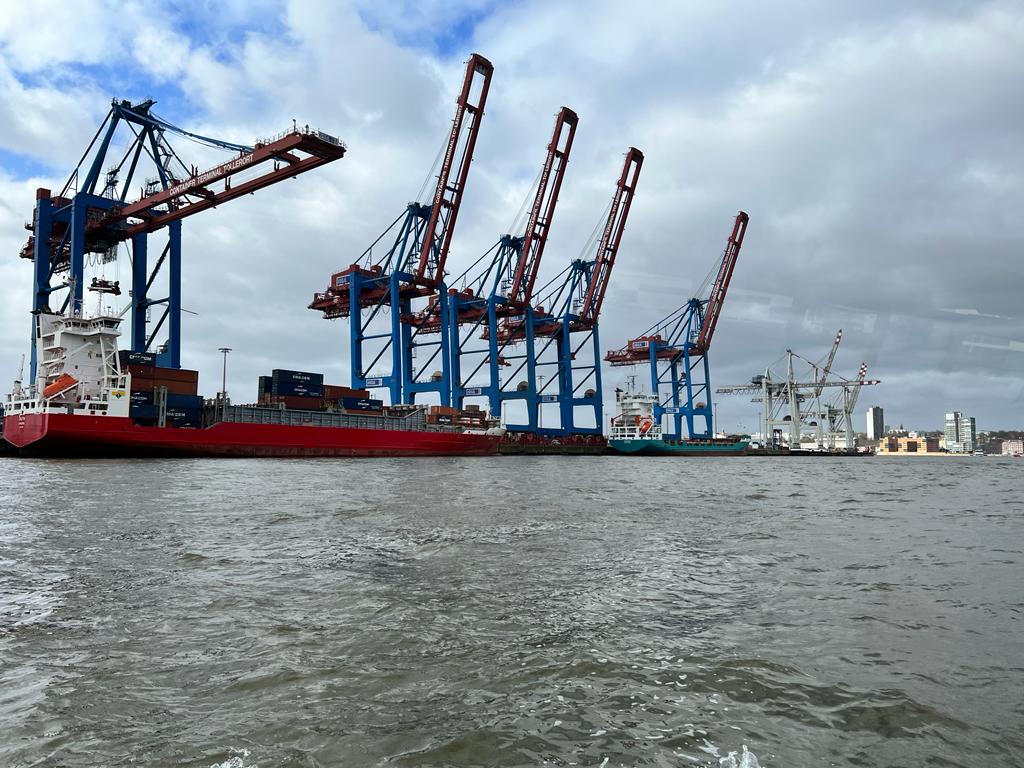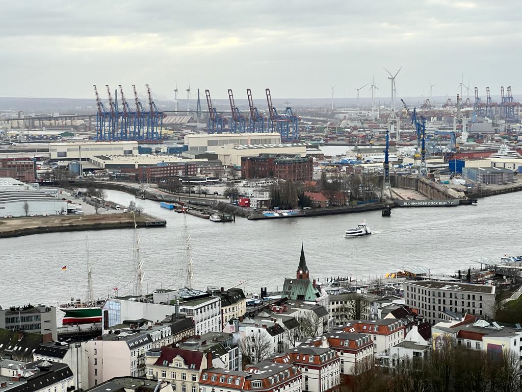 Am nächsten Tag geht es zurm Hafen zur großen Hafenrundfahrt mit der Speicherstadt , dem Containerhafen und der Elbphilharmonie Danach schlendern wir durch den Hafen und fahren auf den Turm vom Michel mit einem tollen Ausblick. Noch ist es eisig kalt. Den Abend verbringen wir mit ehemaligen Kollegen in einem tollen Restaurant in der Hafencity. Am Sonntag frühstücken wir mit Freunden in der Innenstadt und gehen im Anschluss an der Alster spazieren. Am Sonntag Abend wird noch alles in Emma bereit für die Fähre gemacht, um sie am Montag am Hafen abzugeben. Statt erwartete 1,5 Stunden Wartezeit waren wir in 5 Minuten dran, um in den Hafen zu fahren. Die Spiegel werden eingeklappt (die Aussenmasse sind entscheidend), die Antenne ist bereits abmontiert. - alles abgesperrt. Die Überfahrt kann früher als ursprünglich geplant bereits am 8.3. starten. Wenn alles gut klappt, ist Emma vor uns in Halifax und wir können sie gleich vom Hafen holen.